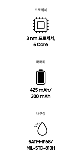 갤럭시 워치7은 3나노, 펜타 코어 프로세서를 탑재하여 빠른 애플리케이션 실행과 전환을 제공합니다.